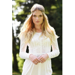 Back to siteSubtelna opaska, którą można założyć w formie wianka, ozdobić nią kok lub wpleść w warkocz. Kolor starego złota nadaje opasce charakteru boho.